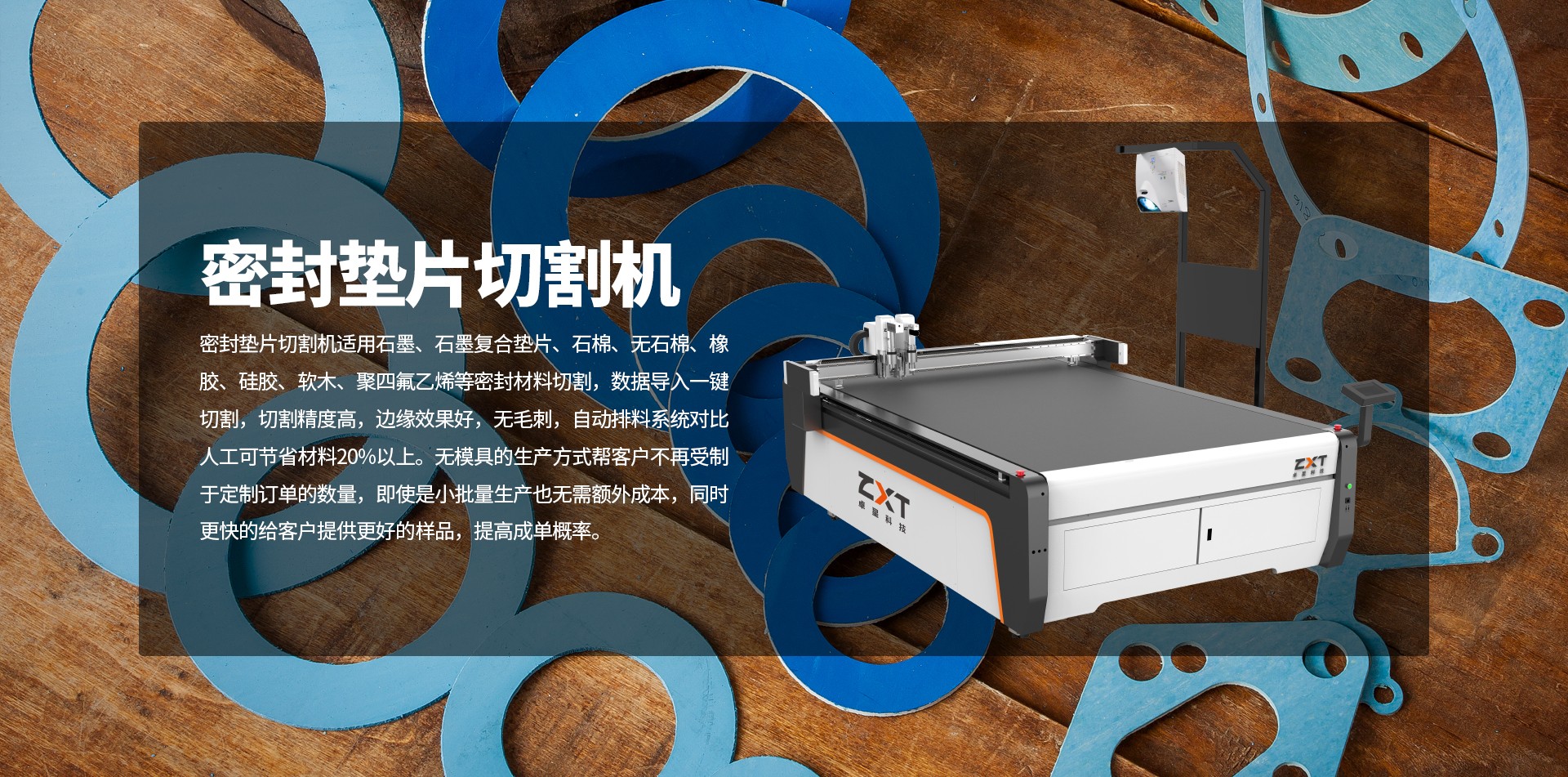 卓星密封行業切割機主要針對密封材料進行全自能切割,材料包括無石棉板材、石棉橡膠板、石墨復合板、橡膠、聚四氟乙烯等。合理先進的機械結構設計搭配針對密封行業研發的刀片,促使卓星密封行業切割機可高精度、高速度、更穩定地完成密封件異形加工,工件成品無鋸齒、無毛刺、平整光滑、一致性好,有效解決密封行業生產效率低下、依賴人工經驗、材料利用率低下、異形件及非標規格制造難度大、產品報廢率高、交貨周期長等問題,幫助密封行業客戶在降本提效的同時以高品質、短生產周期、定制化客戶服務贏得更多的市場占有率!